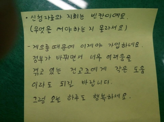 전교조 가입 원서와 CMS 동의서 사이 손 글씨로 꼭꼭 눌러 쓴 메모에는 ‘게으름 때문에 이제야 가입하네요. 정부가 바뀌면서 너무 어려움을 겪고...