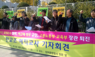 해직교사들은 30일 오전 11시, 광화문 정부종합청사 앞에서 기자회견을 열고 “해직교사들은 전교조의 법외노조 상황에 대해 극심한 심적 고통을 겪...