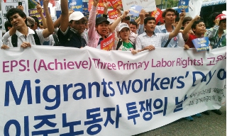 이주노동자를 억압해온 고용허가제 실시 9년을 계기로 300여 명의 이주노동자들이 고용허가제 폐지와 노동3권을 요구하며 우렁쳤다.
