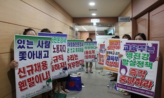전회련 학교비정규직본부 전북지부 소속 영어회화전문강사(영전강) 30여 명이 23일 17시 부로 전라북도교육청 3층 교육감실 복도에서 항의농성에 ...