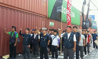 회사 컨테이너 쌓고 담장 울타리 높이고 노조와 충돌