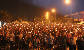 정문에서 모인 1000여명은 오후 4시 30분부터 행진을 시작했고 뒤늦게 도착한 희망버스대원과 합류해 2000여명이 명촌문에 도착했다. 집회 참...