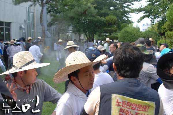 노조활동을 방해하지 말라는 법원의 가처분 이행을 촉구하며 공장에 들어온 노동자들에게 농약을 살포한 경주 발레오전장시스템즈 코리아 인권유린 폭력사...