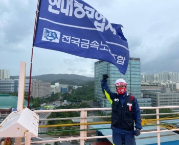 금속노조 현대중공업지부가 6일 오전부터 전면파업에 나섰다. 조경근 지부장은 같은날 울산 현대중공업 조선소의 판넬공장 앞 턴오버 크레인에 올랐다....