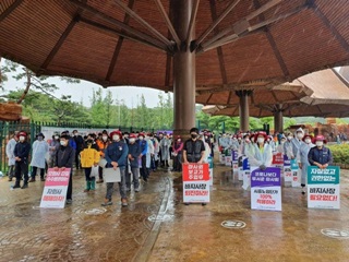 민주노총 공공운수노조가 23일 강원도 원주시에서 건강보험고객센터 노동자 직접고용 결의대회를 예고한 가운데, 원주시가 전날 집회에 대해서만 전면 ...