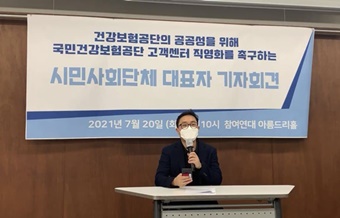 시민사회단체 대표자들은 직접 고용을 요구하는 국민건강보험공단 고객센터 노동자들의 파업이 노·사만의 문제가 아니라 국민건강보험의 공공성을 지키는 ...