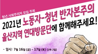 청년 사회주의자 모임 주최 ‘2021년 노동자-청년 반자본주의 울산지역 연대방문단’은 그러한 흐름의 물꼬를 트기 위하여 7월 16일 울산으로 향...