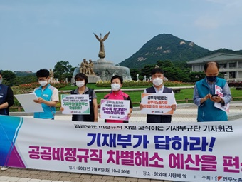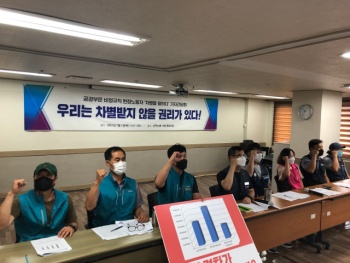 민주노총, 공공부문 비정규직 현장노동자들의 차별 증언하는 기자간담회 진행