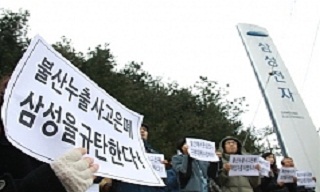 2일 오전 또 다시 삼성전자 화성공장의 불산 누출사고로 노동자 3명이 병원으로 이송된 가운데, 삼성의 유해화학물질 안전관리 미흡과 관련 법안 처...