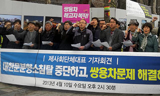 종교계, 학계, 법조계, 민주노총 등 121개 단체가 참여한 쌍용차 범국민대책위원회는 10일 오후 서울 대한문 앞에서 기자회견을 열고 대한문 분...