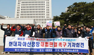 고용노동부와 법원이 현대차 불법파견 문제 해결에 소극적인 행보를 이어가고 있어 비판이 일고 있다. 최근 이마트, GM대우 등에서 줄줄이 불법파견...