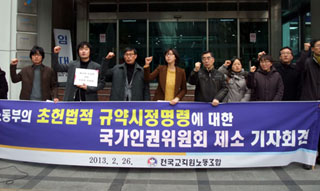 전국교직원노동조합(전교조, 위원장 김정훈)이 고용노동부의 전교조 법외노조 시도와 관련해 국가인권위원회에 진정을 제기했다. 이들은 고용노동부가 국...