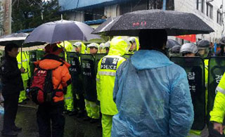 한진중공업 공장 안에서 조합원 등 6명 연행