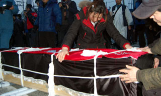 [2신 23:50분] 조선소 공장 안 단결의 광장에 임시 안치