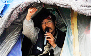 최강서 열사의 시신이 5시간이 넘도록 부산 한진중공업 공장에 멈춰 서 있다. 노조는 경찰 측에 시신을 안치할 냉동 탑차를 공장 안으로 들여보내 ...