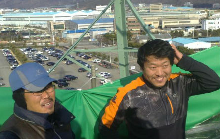 23일 오후 2시 최병승 천의봉 현대자동차 비정규직지회 간부 2명이 농성중인 울산 송전탑 위에 의료진이 올라가 농성자들들을 진료했다.