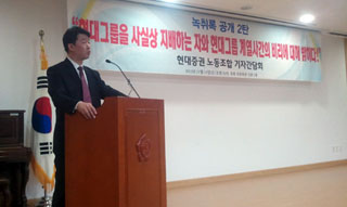 현대그룹을 사실상 지배하는 인사가 현대그룹 계열사 간 비리를 주도 해 온 정황이 담긴 녹취파일이 추가로 공개됐다. 전국민주금융노동조합 현대증권지...
