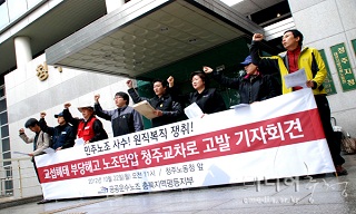 금속노조는 23일 오전, 서울 남부지검 앞에서 기자회견을 열고 “부당노동행위의 직접적인 피해자로서 창조컨설팅과 각 사용자들을 검찰에 고소한다”고...