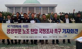 민주노총 공공운수노조연맹은 10일 오전, 국회 앞에서 기자회견을 열고 “이명박 정권의 공공부문 민주노조 죽이기에 대한 국정조사가 필요하다”고 주...