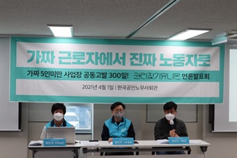 ‘가짜 5인 미만 사업장’을 고발해온 권리찾기유니온이 이번엔 ‘가짜 사업장’ 폐지 운동을 벌이겠다고 나섰다. 이들은 가짜 5인 미만 사업장들의 ...