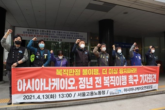 정년 앞둔 아시아나KO 해고 노동자들 “복직 판정 이행 촉구”