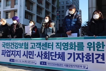 국민건강보험공단 고객센터 노동자들이 노동조건 개선, 직영화 등을 요구하며 1일 파업에 돌입했다. 직영화 논의를 위한 노·사·전 협의체 구성과 이...