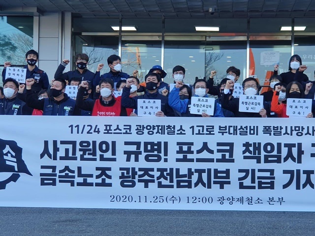 지난 24일 포스코 광양제철소 폭발 사고 등 포스코에서 사망사고가 계속되는 가운데, 사고원인을 규명하고 포스코 대표이사를 처벌해야 한다는 목소리...