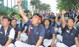 유성기업 직장폐쇄 한 달, 노동자들은 출근하겠다고 하고 회사는 용역업체 직원을 동원해 노동자들의 출근을 막고 있다. 18일 오후3시 민주노총 충...
