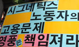 6월 13일 오전, 서울 공덕역 교육장에서 6개월째 회사의 강제적인 희망퇴직을 거부하고 직무교육을 받고 있는 시그네틱스 조합원 32명 전원에게 ...