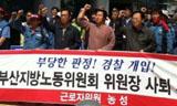부산지노위 노동자위원들은 18일 부산지방노동위원회 앞에서 집회를 열고 "지난 6일 부산지노위의 한진중공업 정리해고 구제신청 기각 결정은 한진중공...