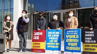 쿠팡 피해 노동자들이 코로나19 대규모 감염과, 연이은 산재사고에 대한 쿠팡의 사과와 대책마련을 촉구했다. 이들은 154명의 쿠팡발 대규모 감염...
