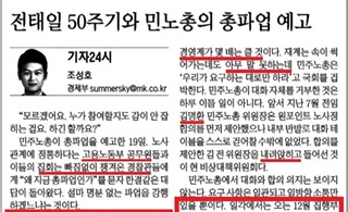 비정규직 노동자들이 전태일 열사 50주기 당일, ‘비정규직을 철폐하고, 다른 세상을 만들기 위한’ 행진에 나선다. 이들은 전태일 50주기이지만 ...