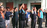 현대자동차 전주공장 노동자들이 최근 부당노동행위를 일삼고 있는 전주공장 내 하청업체인 대명기업을 강력히 규탄하고 비정규직 노동자의 정규직화 쟁취...