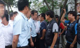 반올림의 기자회견을 방해하고 기숙사와 반도체를 드나드는 삼성반도체 노동자들이 기자회견을 보지 못하도록 아침 일찍부터 삼성은 기숙사 주변에 관광버...