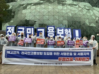 노동자들이 코로나19 재난 시기, 비정규직에 대한 고용유지가 우선돼야 한다며 투쟁을 선포했다. 민주노총 서울본부는 재난기간 해고금지법과 전국민고...