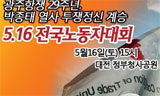 민주노총은 16일 오후 3시 정부대전청사 남문광장에서 1만여 명이 모인 가운데 ‘광주항쟁 29주년, 박종태 열사 투쟁정신 계승 5.16 전국노동...