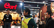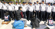 3일 오전 11시10분께 경기 고양시 킨텍스(KINTEX)에서 열린 ‘2009 서울모터쇼’ 개막식장 앞에서 기자회견을 하던 금속노조 비정규투쟁본...