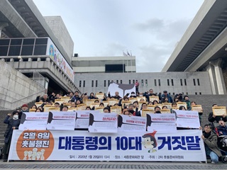 비정규직 노동자 및 시민사회단체가 문재인 정부의 ‘10대 거짓말’을 선정했다. 이들은 29일 오후 1시 세종문화회관 계단에서 기자회견을 열고 “...