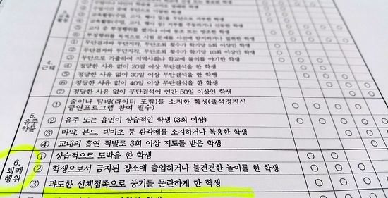 교장을 포함한 교사 5명이 학생과 교사 140여명(학생 130명 포함)을 성희롱했다는 의혹을 받는 고등학교의 학생 대상 징계규정(학칙)이 학생에...