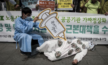 메르스 감염이 의사, 간호사 등 의료진 외에도 병원에 종사하는 간병인, 환자 이송 요원 등 비정규직에도 발생하면서 의료 직종 비정규직 문제의 심...