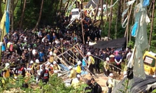 밀양 송전탑 반대 농성장 철거가 진행되는 가운데 115번 농성장의 주민은 구덩이에 들어가 목에 쇠사슬을 묶고 결사 항전을 준비하고 있다. 이곳...