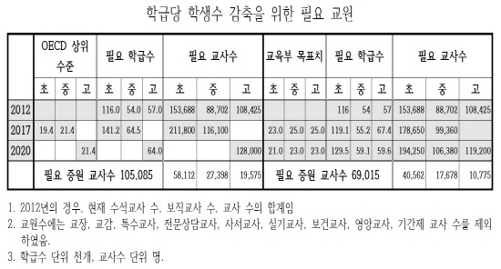 전교조 정책실이 학생수 추이와 현재의 학급 수 등을 종합적으로 고려해 분석한 ‘교육위기 극복을 위한 학급당 학생 수 감축 방안’과 ‘교육도 고용...