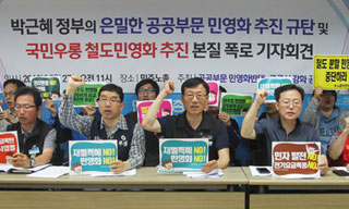 박근혜 정부 들어 철도 민영화를 필두로 공공부문 민영화가 일제히 추진되자 노동계, 시민사회단체 등이 반발하고 나섰다. 공공부문 민영화반대 공공성...