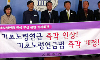 박근혜 대통령 당선인의 공약이었던 기초노령연금 인상이 논란이 되는 가운데 민주노총은 기초연금 2배 인상은 당연하며, 쟁점이 되고 있는 시행시기를...