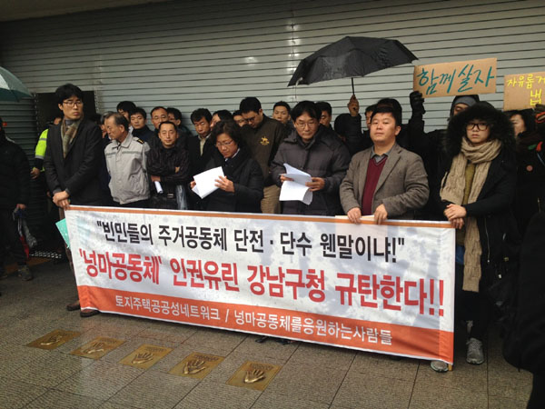 기거할 곳 없는 노숙인들의 쉼터이자 자활 공동체인 ‘넝마공동체’의 시설 강제철거를 두고 강남구청과 넝마공동체 간의 대립이 계속돼 논란이 일고 있...