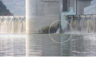 준공 4개월 된 구미보에서 물이 새고 있다. 구미보의 콘크리트 기둥과 철제 수문 사이의 틈에서는 2개월 전부터 육안으로 명확히 식별될 정도의 물...