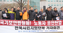 “현 정부는 자신들의 연이은 비리와 실정에 쏟아지는 국민들의 불만을 공안 탄압으로 다스리려고 한다”면서 그 대표적인 사례가 노동운동 단체인 ‘민...