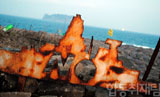 해군이 20일 오전부터 굴삭기 2대를 동원해 제주해군기지 공사를 강행, 중덕 해안가 구럼비 바위가 깨지고 있다.