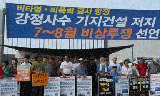 긴장 속에 하루 밤을 지세 운 주민, 종교, 시민, 사회단체회원들은 25일 오전 11시 해군기지 사업단 정문 앞에서 긴급기자회견을 열고 강정마을...