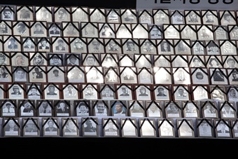 제단을 철거하면서 나온 스티로폼 조각들이 여기저기 액자와 바닥 사이에 날려 뒹굴었다. ‘열사’라는 이름으로 귀결된 사람들의 영정사진이 “열사정신...